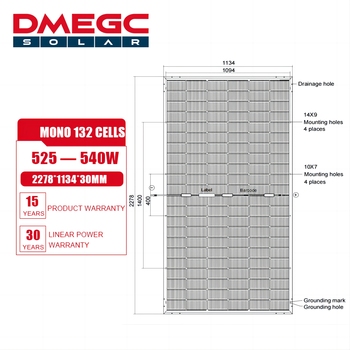 Paneles solares DMEGC 525-540W Transparencia 10% Módulos Mono PV Área transparente 10%